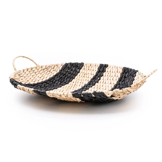 Rush Woven Plate Black Stripe Pattern with Handles 35cm