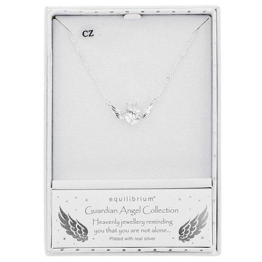 Guardian Angel Silver Plated Circle Wings Necklace in Gift Box