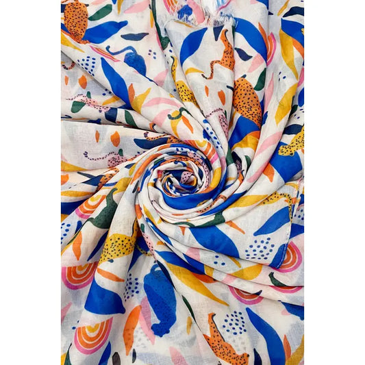 Vibrant Leopard & Rainbow Print Frayed Scarf