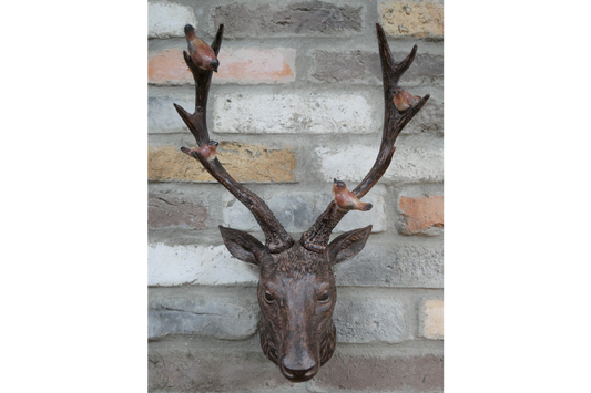 Stunning Stags Head Wall Ornament with Birds on Antlers