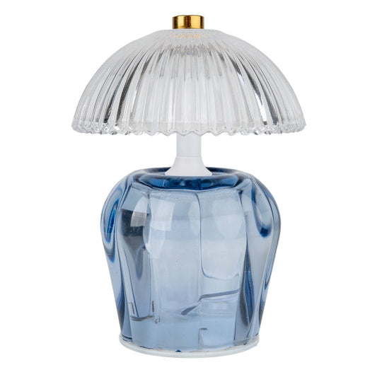 Vintage Ridged Glass LED Table Lamp - Blue