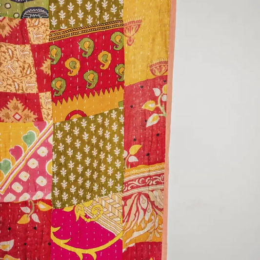 Hand Stitched Vintage Handstitched Cotton Kantha Throws - Peach