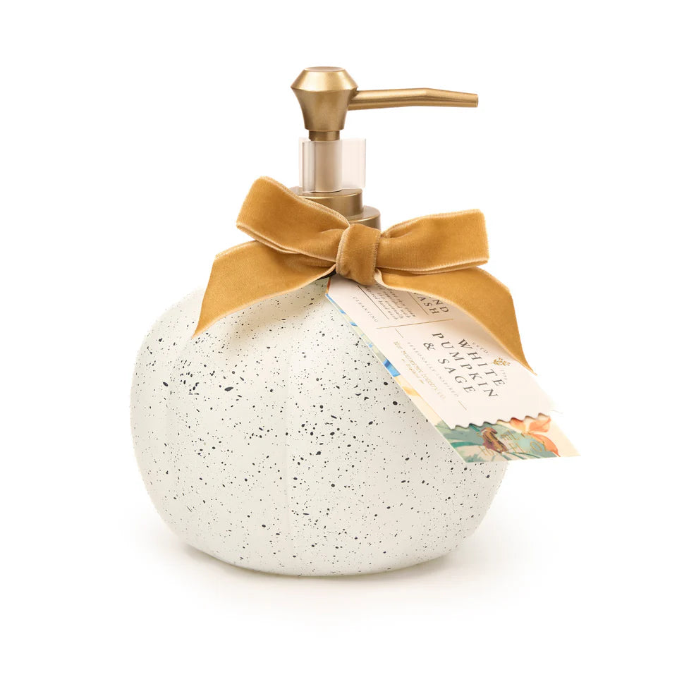 Get ready for fall with this trendy glass hand soap, featuring Pumpkin and Sage's refreshing and delightful scent.
